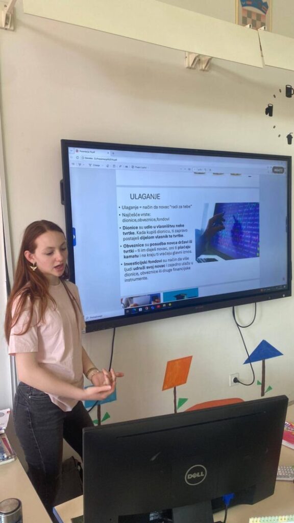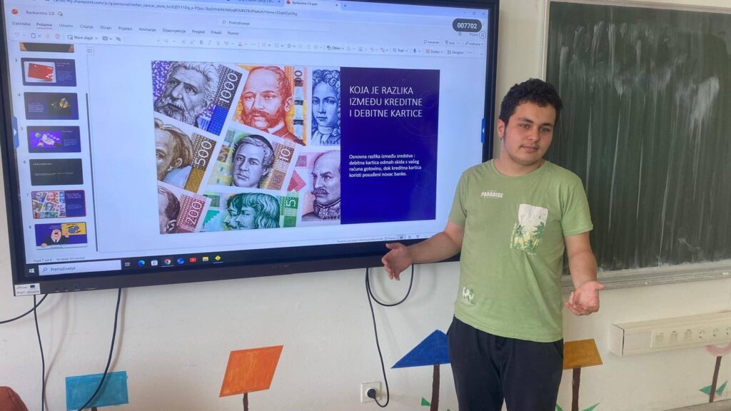 Kroz interaktivno izlaganje, učenici su naučili kako razlikovati kartice, koje vrste štednje postoje te kako pametno planirati prve investicije. Svrha ovog sata bila je jasna: osvijestiti važnost svjesnog trošenja i pokazati da se uz edukaciju i kritičko razmišljanje lakše korača prema poslovnom i privatnom uspjehu.