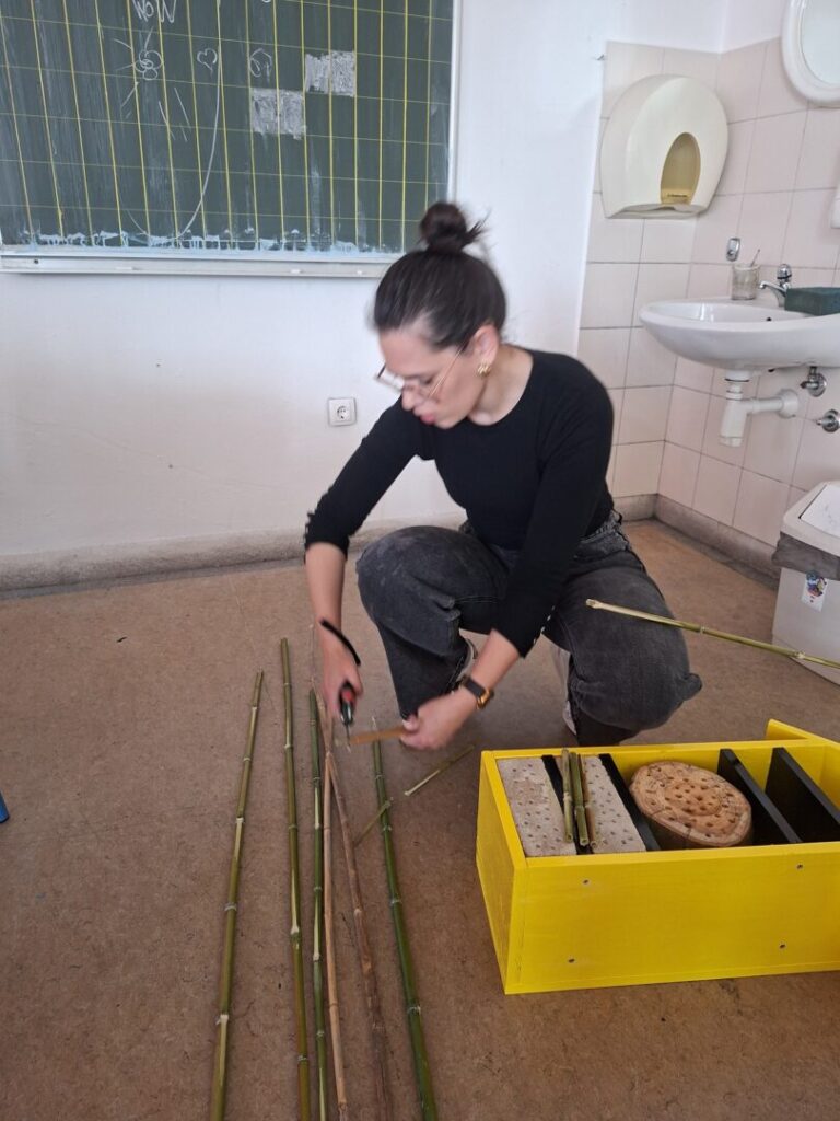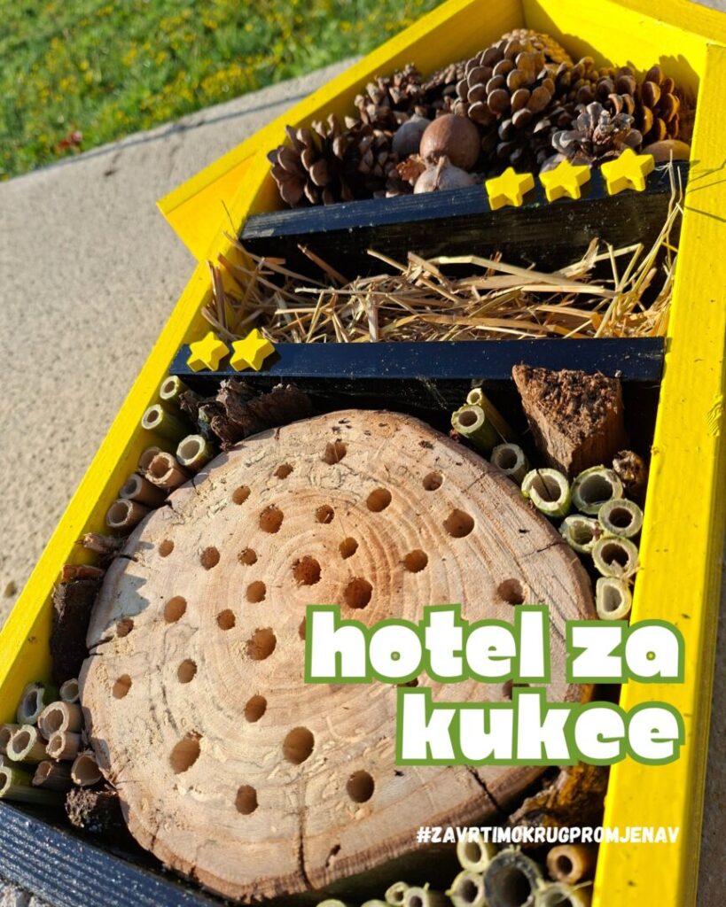 U drugom dijelu radionice učenici su upoznali korisne kukce i njihovu važnu ulogu u vrtu, uključujući solitarne pčele kao ključne oprašivače, bubamare kao prirodne neprijatelje lisnih uši te zlatooke kao značajne saveznike u borbi protiv štetnika. U nastavku aktivnosti učenici su osmislili i predstavili vlastite reklame za „hotele za kukce“, demonstrirajući načine na koje se mogu privući prvi korisnici ovih skloništa. Izrađeni hoteli, koje su učenici ocijenili najvišom ocjenom, ispunjeni su prirodnim materijalima poput slame, bambusa i šišaka.