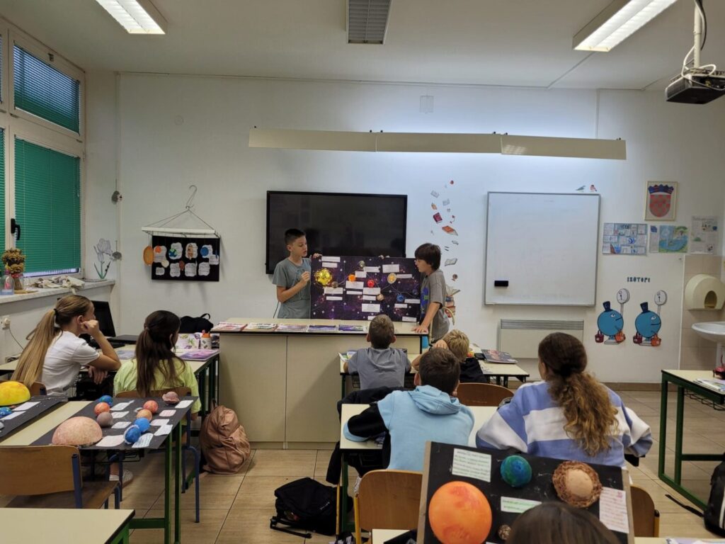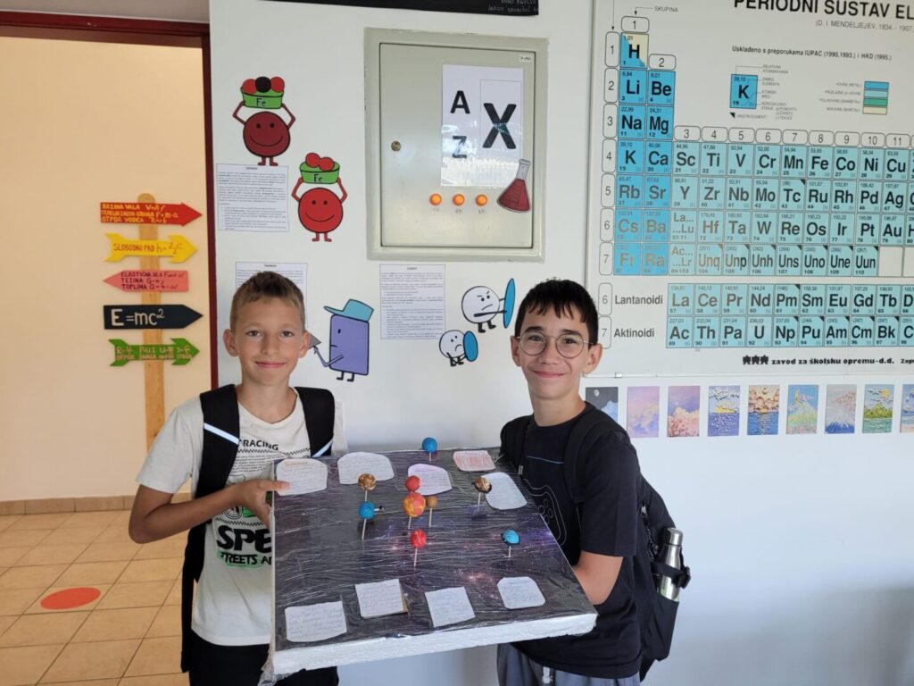 Učenici šestog razreda upustili su se u uzbudljivo putovanje kroz Sunčev sustav izrađujući vlastite modele planeta i ostalih nebeskih tijela. Koristeći različite materijale i maštovite ideje, prikazali su svaki dio našeg planetarnog sustava na jedinstven i kreativan način. Nakon završetka izrade, s ponosom su prezentirali svoje modele pred ostalim učenicima, pritom dijeleći zanimljive činjenice i otkrića o svemiru.