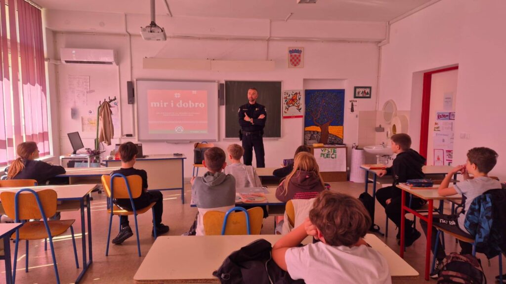 U sklopu operativne akcije „Mir i dobro“, koja se već dugi niz godina provodi u kontinuitetu, učenicima petog razreda naše škole, policijski službenik, održao je predavanje u kojem je nastojao apelirati na učenike da se suzdrže od uporabe pirotehnike jer pirotehnička sredstva nisu igračke, već eksplozivne tvari čijim nestručnim rukovanjem mogu nastati ozbiljne ozljede i teške posljedice za cijeli život.