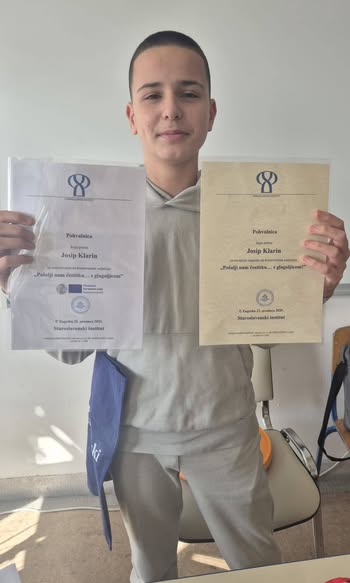 Na natječaj su pristigli radovi 322 učenika iz cijele Hrvatske, a nas je razveselila vijest da je naš učenik Josip Klarin nagrađen u kategoriji učenika osmog razreda.