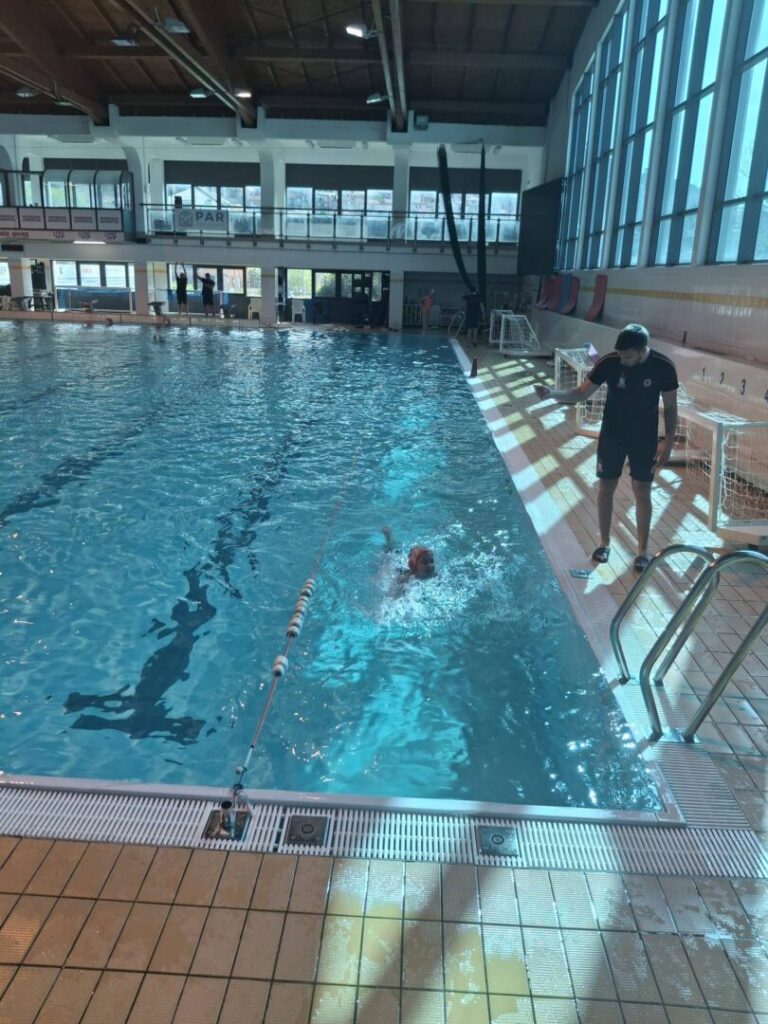Na bazenu su djeca učila pravilno plivati uz pomoć različitih pomagala, skakati u bazen i poštivati pravila ponašanja na bazenu.