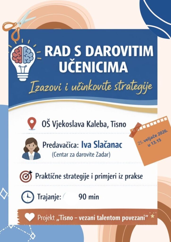 Tema predavanje je „Rad s darovitim učenicima: izazovi i učinkovite strategije“